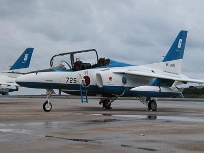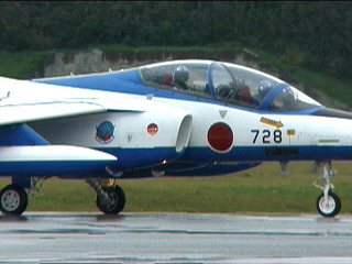 とうとう見事にエシュロンをくんだT-4×6機が那覇上空に現れました!