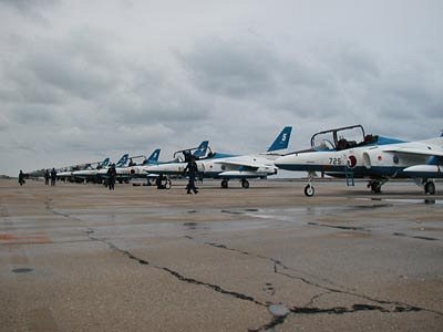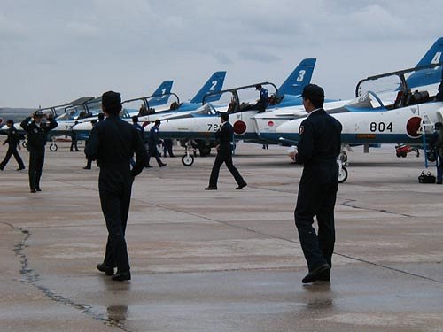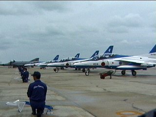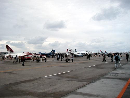 最後はパイロットがウォークダウンで今日のフライインを締めました!そして、2004年シーズン、航空自衛隊航空祭のトリとなりました。やはり最後はブルーが航空祭を締めてくれました! 大観衆が見守るウォークバックを一緒になって眺めていた海上自衛隊のP-3Cパイロットさんが「ブルーインパルスのパイロットってそんなに偉いのかぁ・・・」と感想を漏らしていたのがなんだか妙に笑えました(^-^;)