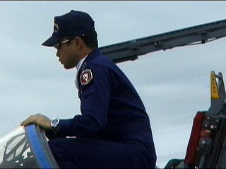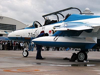 パイロット、整備員達が全ての展示を終了しました。ウォークバックから戻ってきたパイロットは大勢の観客を前にして少し照れくさそうに「こんにちはっ!」と笑ってくれました。これを見た時、ものすごいかっこよさにばきゅーんとやられました。(爆笑) だって凄いクールですよ、こんなかっこいい飛行機で飛んできて、あんなかっこいいウォークバックやって、戻ってきて一言「こんにちはっ!」ですよ、たまりません。あーっ鼻血!!(笑)