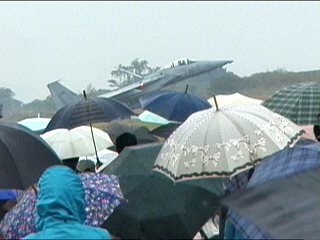 こんな雲に霞んじゃうような天気なのに元気いっぱい飛んでくれちゃってるんですよ!ほんと、他の基地ならゼッタイ中止だぞー。もうこれだもん、飛行開発実験団大好きです!さすが地元!(^-^;)