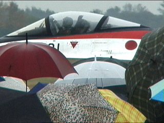 と、その前に救難展示でーす。悪天候の強い味方、救難隊です!どんな悪天候でも飛んでくれます!10年前、あの台風の中でも飛びました!そう、10年前、あのADTW40周年も雨だったんですよね・・・。雨でも飛びます!とか言いながら、本日同時開催の築城基地航空祭では救難展示は雨で中止になったそうです。