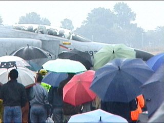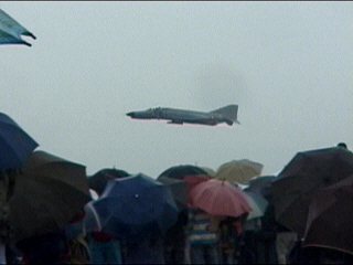つづいてはF-4のトライアルです!さあ行こう!!・・・ね。みんな傘。だーだー降ってるんですよ。…飛ぶんです!