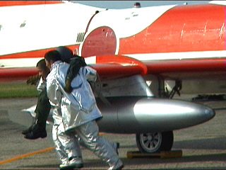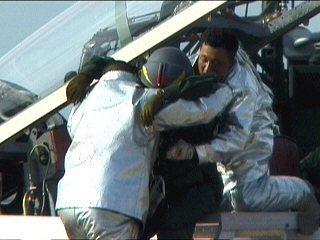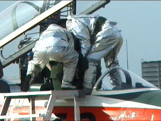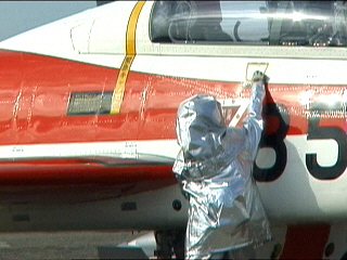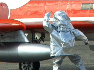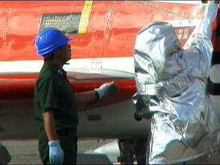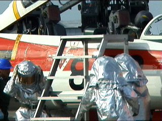 冗談はさておき。滑走路上で火災を起こしてる航空機からパイロットを救出します。初めて見ましたけど、まさに命がけですね。