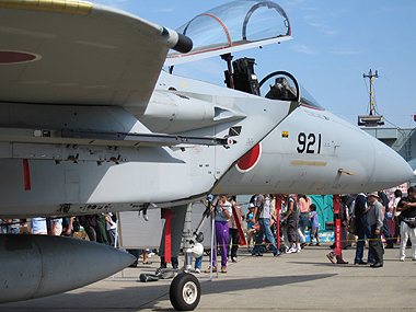 第303飛行隊からF-15J。岐阜からもDJが来て、格納庫内でコクピット公開していました。