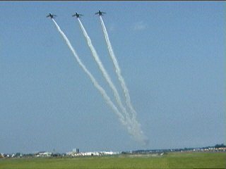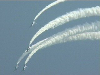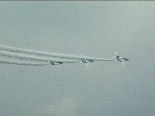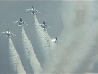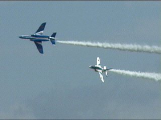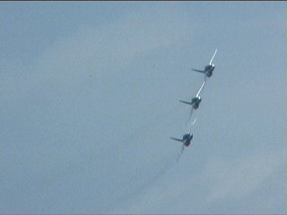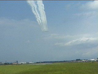 最後のローリングコンバットピッチまできちっと見せてくれました。ただ、このあと、ソロの2機もいつも通りの進入までして結局コークスクリューは見せずに終わりました。今日は区分が無かった感じ?でも楽しめました!奇跡の縦系アクロです!