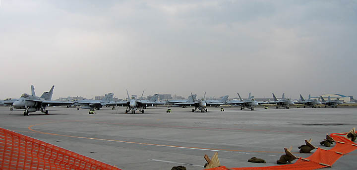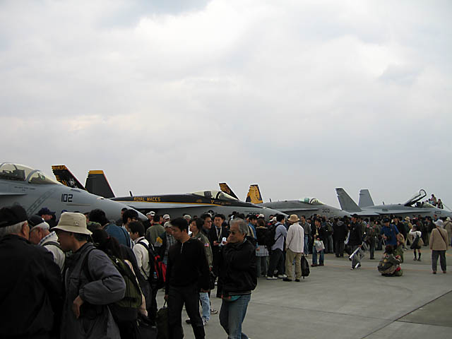 展示機ではありませんでしたが、エプロンには遙か遠くまでF/A-18の列線ができていました。すごいなあ。4個飛行隊はホーネットだもんね。時代は変わりましたなあ。