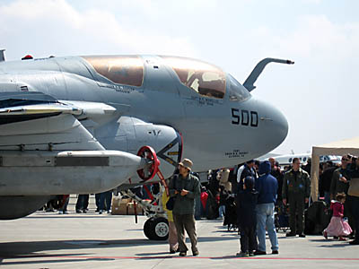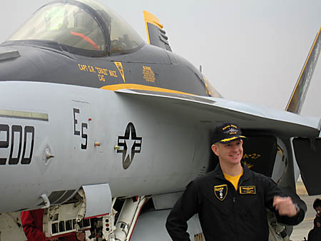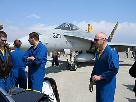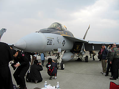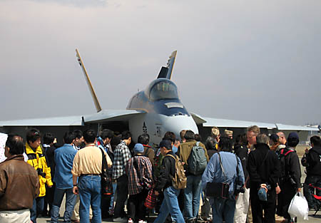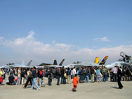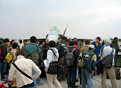 VFA-102の前も人だかり。あ。なんかバックにヘリコプターが飛んでる!