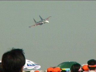 なんかロシアって、ソ連だったころはアメリカと並んで軍事大国ってイメージでしたけど(って現役ではあまり知らないけど)、最近は戦闘機の稼働率も悪そうなイメージでした。ごめんなさい。1時間の間に2度もアクロやっちゃうロシアンナイツは凄いです。予備機なし定数5で来て全部アボート無し。前日の2度のフライトもね。それも自前のスタッフではない、中国空軍スタッフによる支援で。これはすごいことですよ。これだけ稼働させられるってかなりの脅威!Su-27もタフな機体ですねえ。