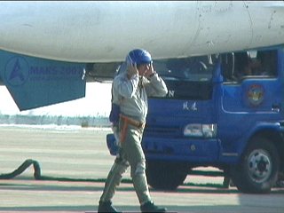 はーいお疲れさーん。・・・ではないのです!!実はロシアンナイツ、1回目の飛行から1時間後にはすでに2度目の飛行のエンジンスタート!なんちゅうタフさ!!ロシア人恐るべし!