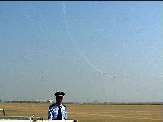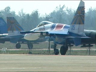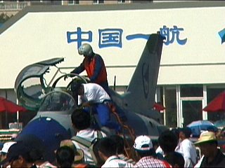こっちはFTC-2000ね。えっっ!?MiG-21の改造じゃないの!?オリジナル??えー!?まあいいや、とにかく飛ぶそうです。なんだかふるめかしい装具のパイロットが乗り込みます。中国だなあ。て、この観客からこの距離でエンジンスタート!?と思ったらほんとにエンジンスタートしちゃいました。そしてバイクの暖気よりよっぽど早くランプアウト。これには呆れました。待ち時間ほとんど無しです;大丈夫かMiG-21!!>だから違うって;