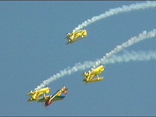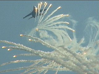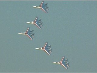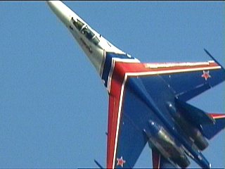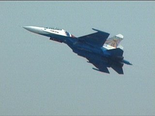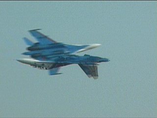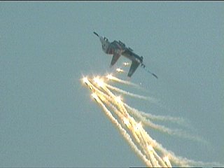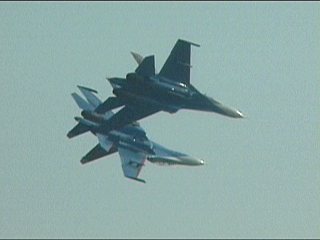 高AOAでのんびり飛んでいます。フランカーが公開されたころ、この飛び方に驚愕した西側陣営があわてふためいたんですよねー。で、ブルーズも対抗するように同じ課目を始めたという。しかも2機で。大人げありませんなあ。(笑)