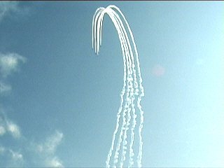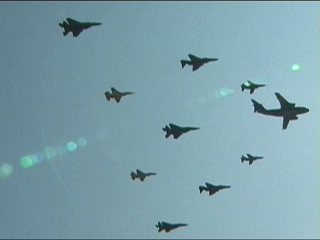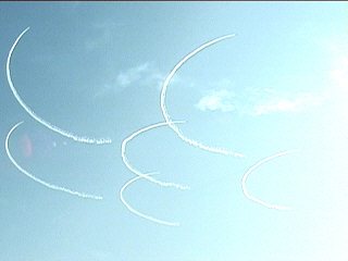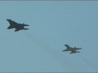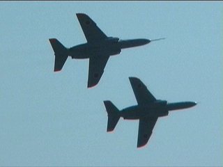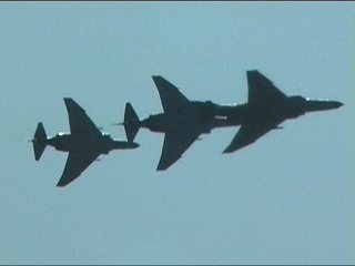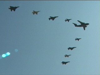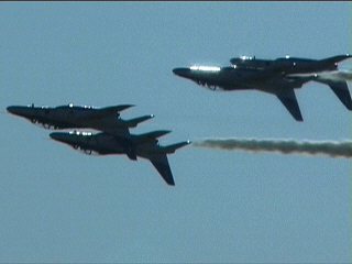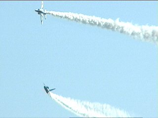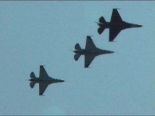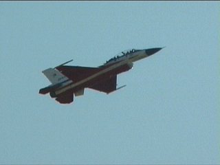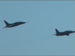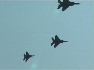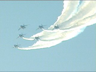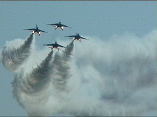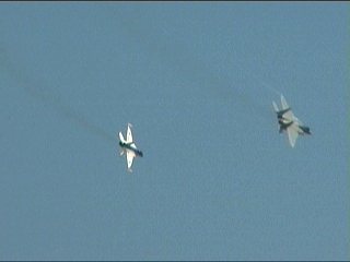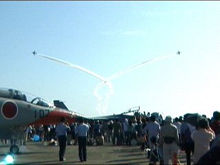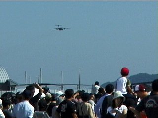 あ。突き回されるF-15。うわお。今年もF-15&F-2で追いかけっこです。F-16なんてF-15の安物な補助のクセにー!(←ついに暴言)けどF-2はやっぱりかなり進化してます。素人のワタクシが見てるだけでF-15より1世代新しい動き方するもんね。形はほとんど変わらないのになあ。某アメリカ帝国にF-16を押し付けられた日本航空業界と空自の意地を感じます。なんだかんだ言ってもやっぱ傑作でしょう。(^^;)KF-16vsF-2とかって意識しまくりの某大韓民国(←どこが某だ;)の皆さん、残念ながらF-16を国内で作っただけの貴国の色の薄いファルコンとF-2では出来がぜんぜん違います。(またも暴言)そういやちょうど去年のこの時期にソウルエアショー見てたんだもんなあ。