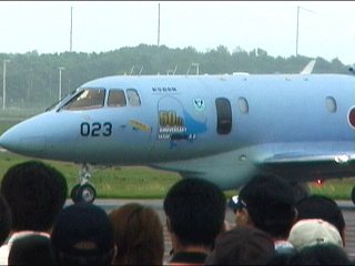 オープニングは飛べなかったのでタキシングに変わりました。オープニングタキシー。千歳基地開庁50周年マークがついてます。