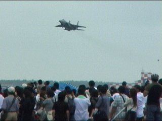 目の前に駐機された2機のF-15に弾薬・燃料を搭載し、スクランブルの発令でエンジン始動、ランプアウトしていきました。94年とかはもっとフライトも多かったのになあ。編隊飛行も10機以上参加してたし機動飛行も2回あったし、AGGも三沢の機体が担当してたし。最近はどこも、少し航空祭の展示飛行が縮小傾向ですね。ただ、機数が減った一方で機動は激しくなっていると感じます。このまま外国のように機動は1機、だけどロールもループもありのデモフライトになっちゃったりするのでしょうか。編隊飛行とかも華やかで好きなんだけどなあ。