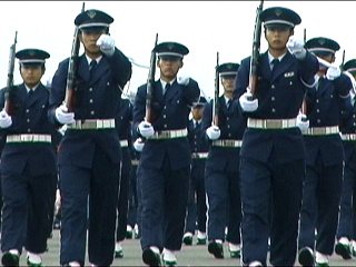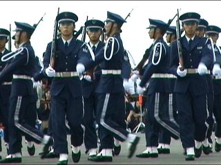 最後はもちろん栄誉礼もあります。最初にもね。配置が不思議なので、栄誉礼を受けている千歳基地副司令の前にたくさんの一般人がいます;;