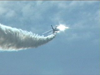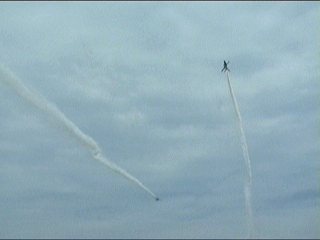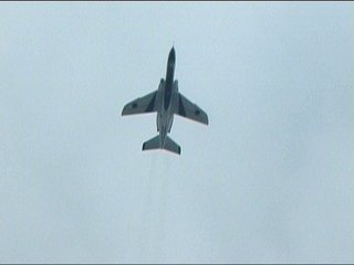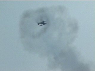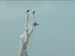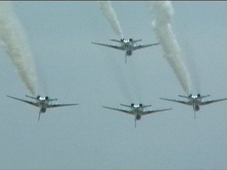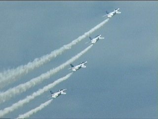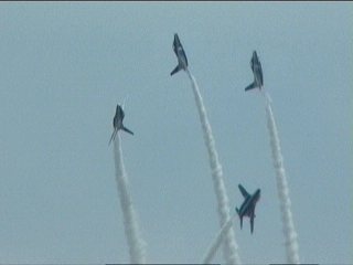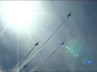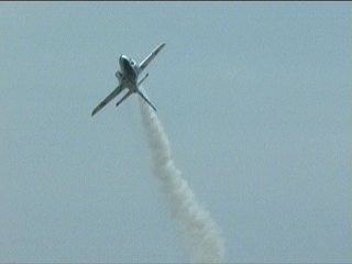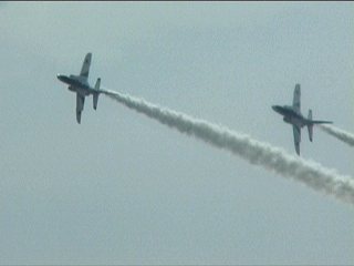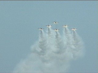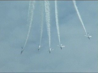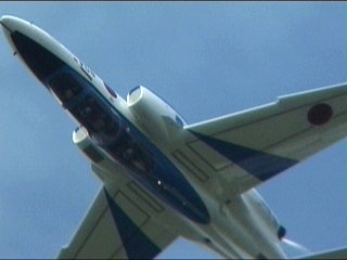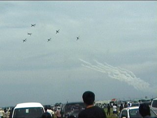 それにしても風が強い!前の画像でもスモークが流れてるのがわかるかと思いますが、ほぼ正面に見えていた編隊が頭上ではなく遙か左の方を通過していく…流されたんですね;;