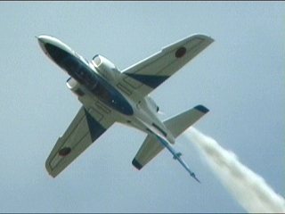 はいでました、問題の課目、パラレルハイロール。パラレル〜って言葉は、航空祭ではT-2時代以来すっごい久しぶりに聞きました。この課目自体、公式展示では初めて見たな。あとはDVDとかLDとか・・・ノエビアのCMとか・・・は使い回しだったか。(笑)