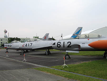 F-86D、F-86F、T-33A。保存機もそこそこいい状態で展示されていて嬉しいですね。数年前はF-104が苔に覆われてて天然迷彩だとか言ってる某M氏がいたのに・・・(笑)