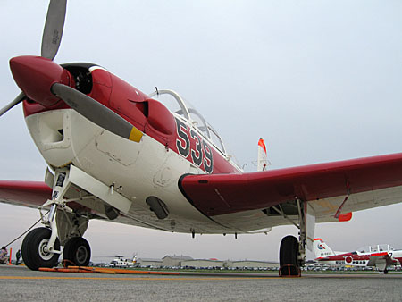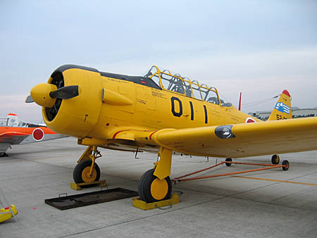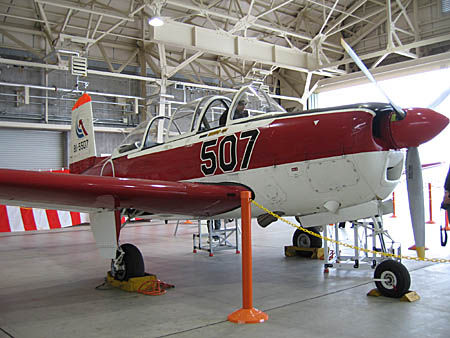 ついこないだフェーズアウトしたばっかりの機種、T-3が格納庫内でコクピット解放に使われてました。(^^