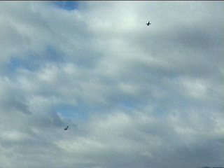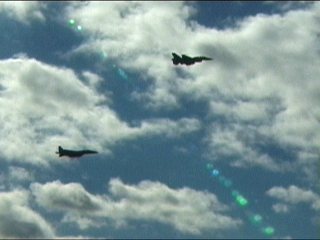 おりゃー!!って、ここでも意地の張り合いです!F-2はライトターン、F-15はレフトターンで激しくかき回します。