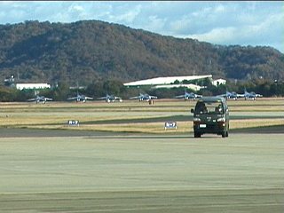 広い会場にでっかい飛行機、低空飛行のブルーインパルス。いいなあ。そういえば、T-4ブルーが2000年の事故から6機態勢に復活したのが2002年の岐阜でした。あの時も4区分だったっけ。