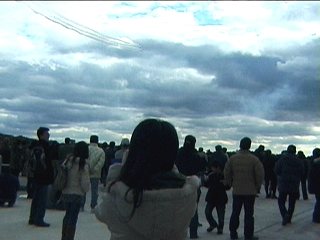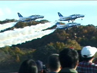 おっとー、今回はお昼にブルーインパルス登場です!けっこう大きな角度で上昇するんですね。