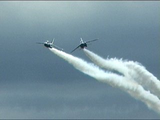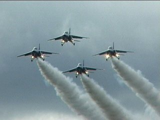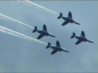 久しぶりに見たトレイルtoダイアモンドロールです。98年までは1区分に入っていた課目ですね♪隊形を変換しながらの横転はすっごく難しそう。