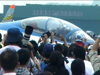 お父さんは体力あります。だいたい、ウォークダウンが始まるとお子さまを肩車し、フライトが始まる頃に疲れて子供を降ろしちゃうってのがよくあるパターンです・・・。なんせウォークダウンからエンジンスタート、チェック、などなどで離陸までに20分かかりますからねえ。みなさん、お子さんを航空祭に連れて行かれるなら、ペース配分気を付けてね。(^ー^;)