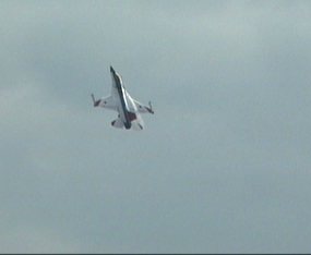 これは高AOAをデモってるところです。相変わらずの安定感。この後、アフターバーナーに点火しそのまま720度旋回を披露しました。
