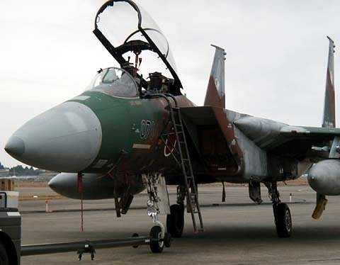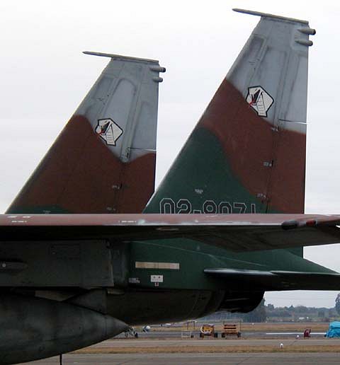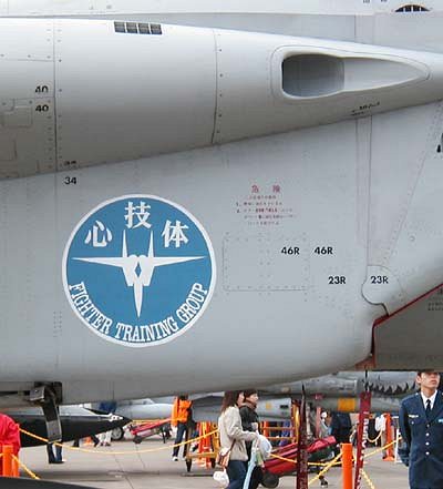 ![]() 地上展示のF-15には様々なマーキングが。心技体。 |
