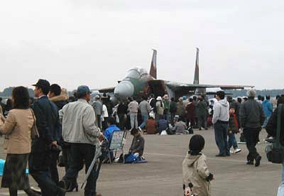 ![]() 地上展示機奥にはスホーイ迷彩の飛行教導隊のF-15J。 |