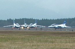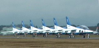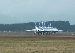 滑走路上まで出てきて・・・綺麗なエシュロン隊形を形作り。