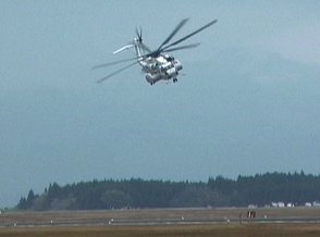 そしてびっくりはこの海自MH-53。ヘリはみんな会場東側から離陸、そのまま飛び去っていましたが、このMH-53だけR/W10まで移動・・・なにかやらかしてくれると期待しましたがやはり・・・離陸直後にまずこのつっこみ!OH-1じゃあるまいし、すごい!