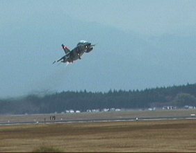 6SqF-1もアフターバーナーの炎を引きながら低空離陸です。