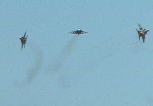 そして3機できれいな散開も見せてくれました。別の飛行隊なのに仲良しで飛んでるのってなんか良いですね。
