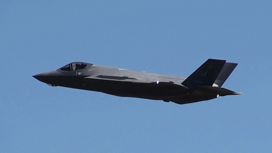 どーん。って感じです。F-35のエンジン音は重厚です。単発戦闘機としては史上最高重量の戦闘機ですからね!ですよね?(^^;