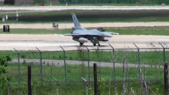 一度タッチ&ゴーしたのち、チェイスのロッキード社有F-16が激しくローパスします。
