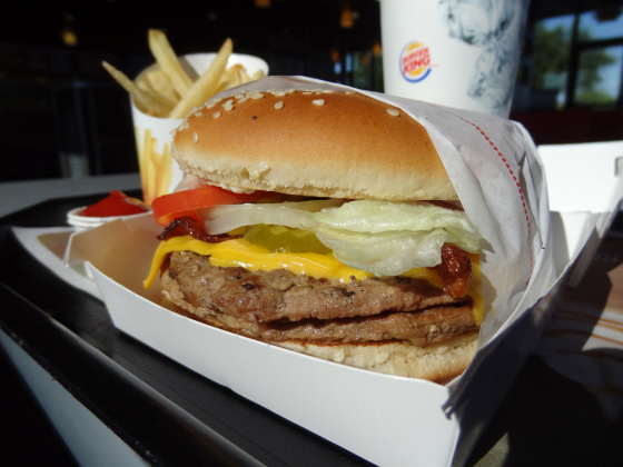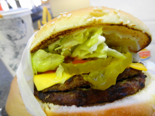 んで、空港へ行く途中、ハイウェーから看板が見えたからうっかり寄ってしまったぜ、バーガーキング;;テキサスダブルワッパー、再度!!ベーコン!ハラペーニョ!マスタード!!美味しいー!!!><