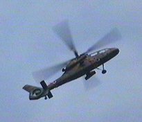 UH-60Aの上で見物していた米陸軍のUH-60クルー、この展示飛行に大ウケで驚愕してたそうな(笑)