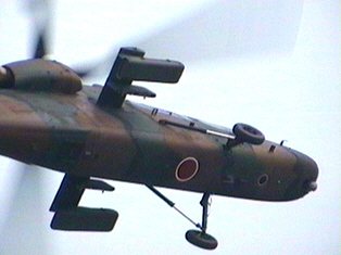 から反転して飛び去ります。どう考えたって、後ろ向きに上昇するなんて非常識(笑)マイナスGでのコントロールや後進上昇なんて非常識な事ができるのはOH-1がそれだけ凄いヘリだってこと。