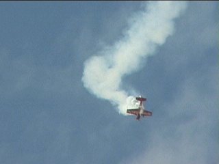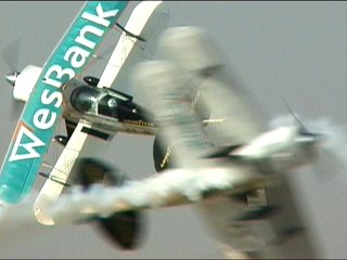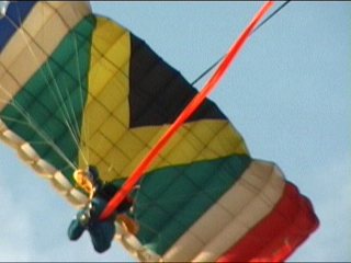 はい、パラシュートも南アフリカ色でした。不思議だったのはこのパラシュートがどこから現れたのか。ピッツが上空でひっくり返った時に堕ちてきた気がする。つまり、ピッツ、二人乗ってアクロしてたのかな?