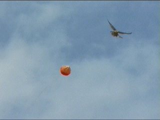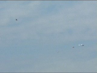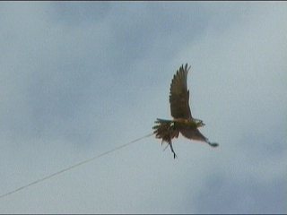 やや、いつの間にか帰ってきた。そして見事オトリを捕まえました!これまた大拍手!凄いかっこよかったですよ、ホント。ハンティングをうまくショーアップするラジコンの操縦もすごいよね。小鳥に持って行かれたけど。