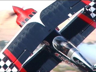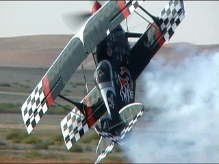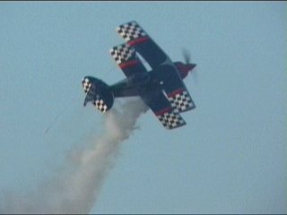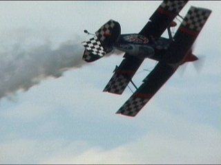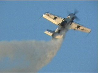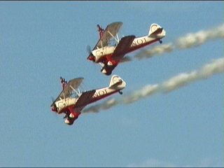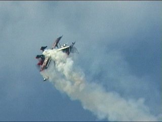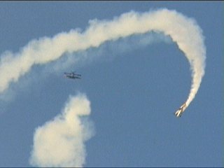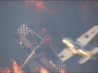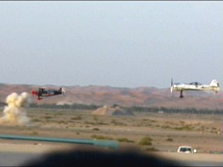 なんか変なことが始まりました。Alabama Boys Comedy Showとのことで、まあ、はやい話がショー仕立てのフライトです。フライトスクールにやってきたおデブさん。変な行動にスクールスタッフ大慌て。の演出なのに、本当に大慌てしてたのがALAINエアショーの会場スタッフ。おいおい連絡悪すぎ;;