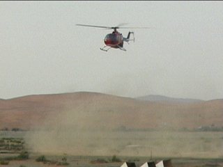 つぎ、後方からいきなり突っ込んできて正面で止まったこいつ。あ。Nellisでこないだ見たばっかだぞ。レッドブルのヘリです。