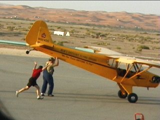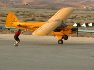 変な機体チェックの後、スタッフに追いかけられたりしてるうちに離陸してしまったおデブさん。地上でスクールスタッフ呆然。地上スタッフをナメるようにラダーをパタパタしてました。