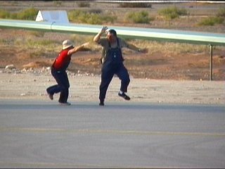 本日ラスト!砂漠の日も陰って寒くなり始めていますが、まだまだ行きますよ!ユルギスさん&スキップスチュワートさんでTinStix of Dynamiteなデモです。