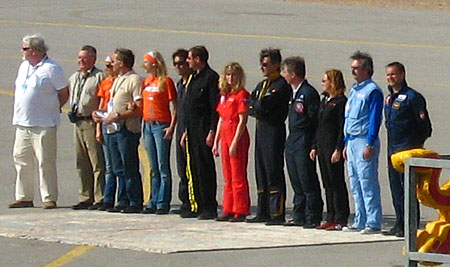 あとでパイロットの表彰もされてましたよ。黒に黄色いラインの入ったフライトスーツの人が室屋さんかな?左5人はどうもパイロットには見えませんが・・・(笑)