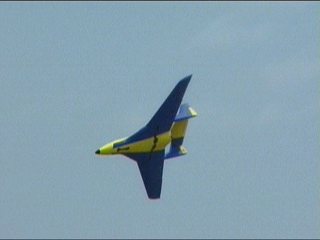 今日もラジコンから。見たことのない形の飛行機が飛んでいました。