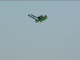 なんとまあ、芝刈り機(?)まで出てきましたよ。飛んでますよ。マジで呆れました。06年のマーチ空軍基地で仮設トイレのデモ走行を見て以来の呆れ具合です。ラジコンだけど、どうやって飛んでるんでしょうね。どこで揚力が発生してるんだか。ロールとかループとかアクロもやってました。あ。疑ってるだろ。証拠動画があるんだぞ。どうだ。信じた?