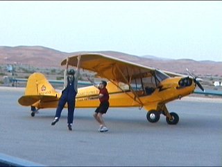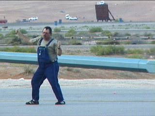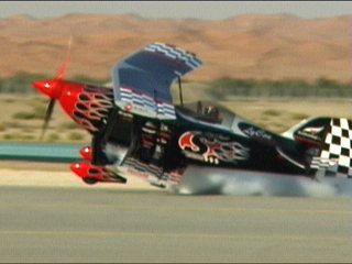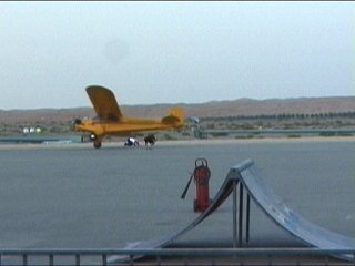 あー、今日もふざけた雰囲気ながらかなりの技量を伴った危険なことやってます。片輪接地で、しかも屈んだ地上スタッフの上を通り抜ける…こわ;;
